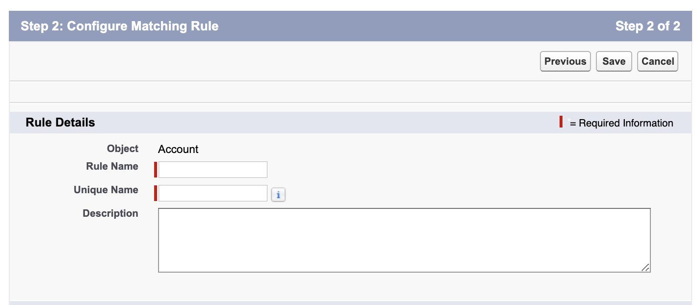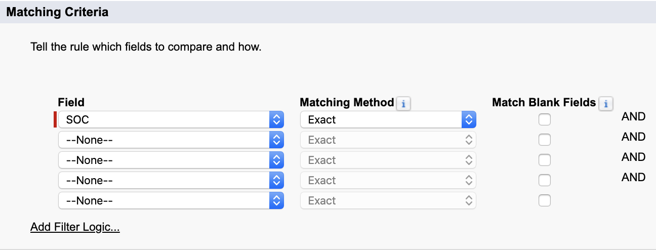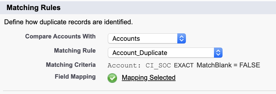 *The image is an example of a matching rule for an account object. Define matching rules for each contact or lead object.