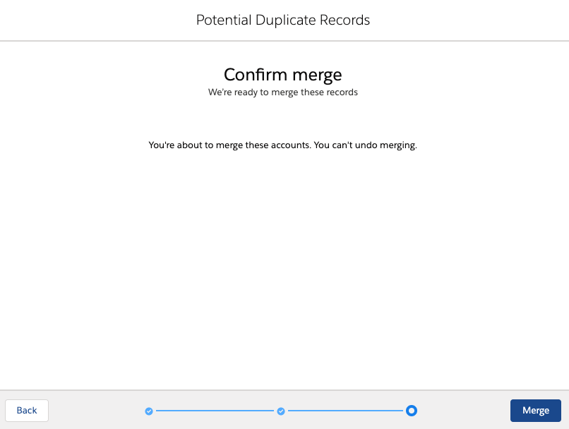 5. Click Merge to merge duplicate records.