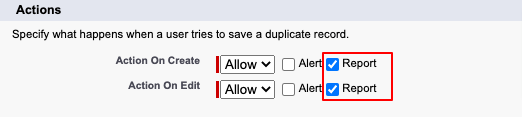 4. Add a checkmark next to Report to check for duplicate records in the Salesforce report.