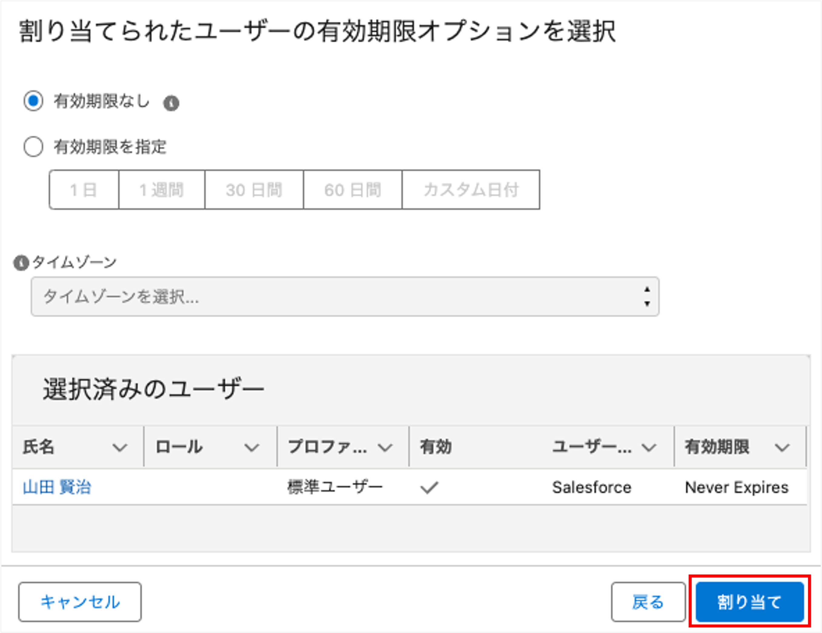 ※パッケージバージョンが ver1.61 以上のお客様は、Salesforce 認証で使用したユーザに対し初回のみ権限 セットが自動で付与されます