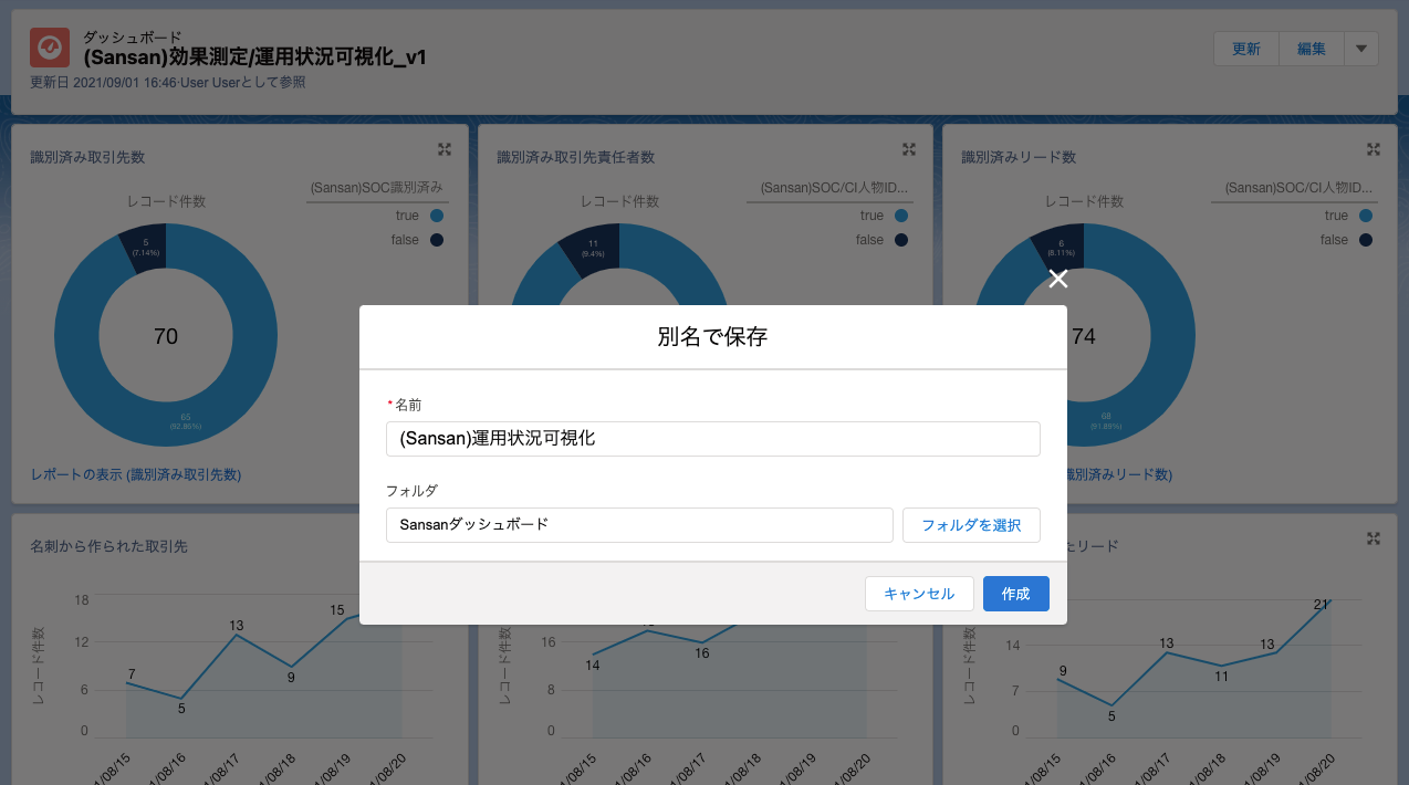 4. 「(Sansan)効果測定」「(Sansan)運用状況可視化」と名前をつけて[作成]をクリックします。