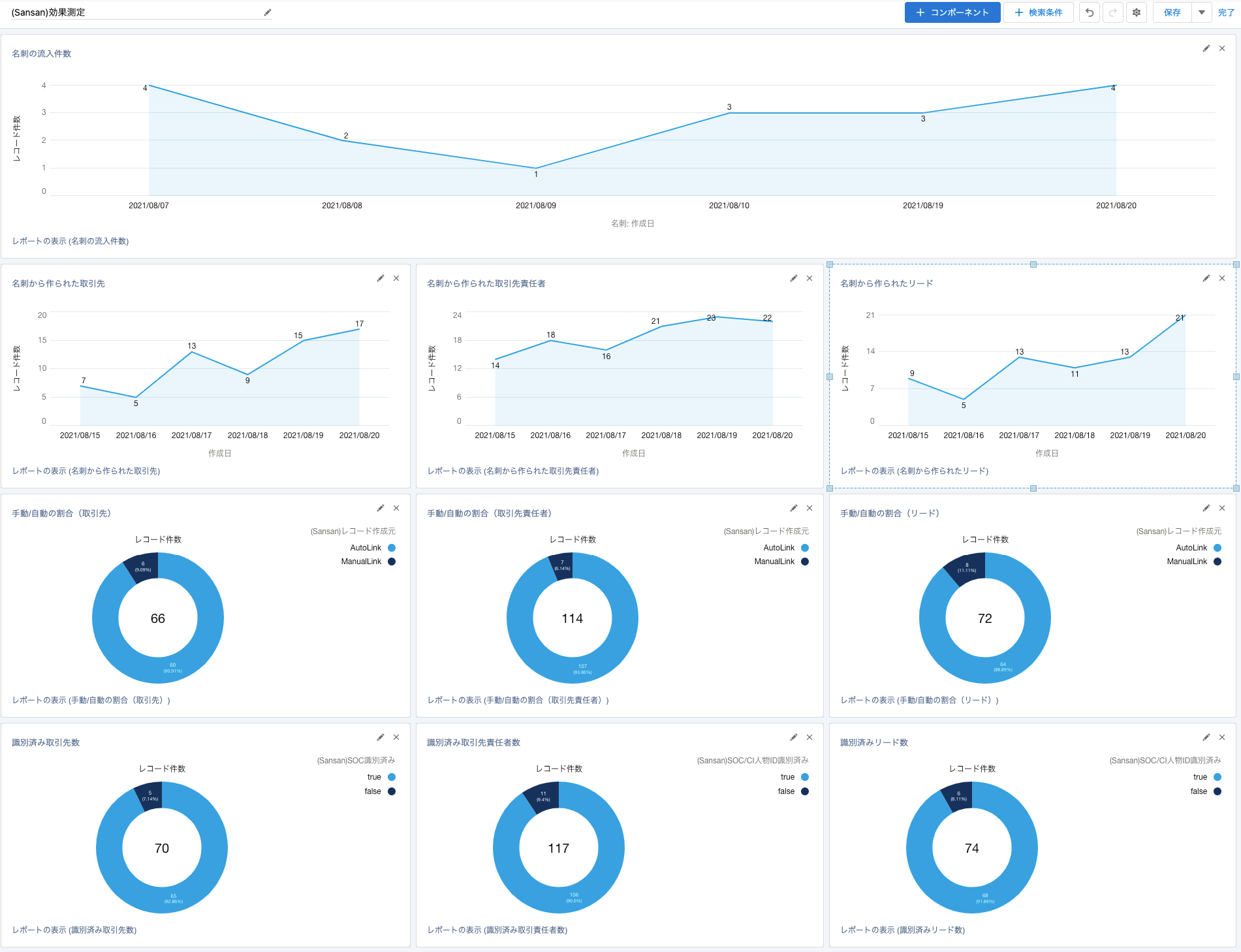 以下は「効果測定用」・「運用状況可視化用」に表示するコンポーネント例です。あくまで一例ですので、お客様の運用にあわせてご検討ください。