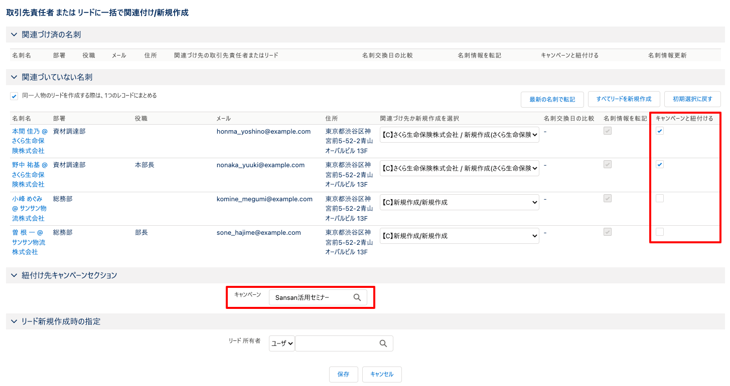 名刺オブジェクトへ連携された国コード情報は、手動関連づけ/自動関連づけを介して【取引先】・【取引先責任者】・【リード】へ反映することが可能です。