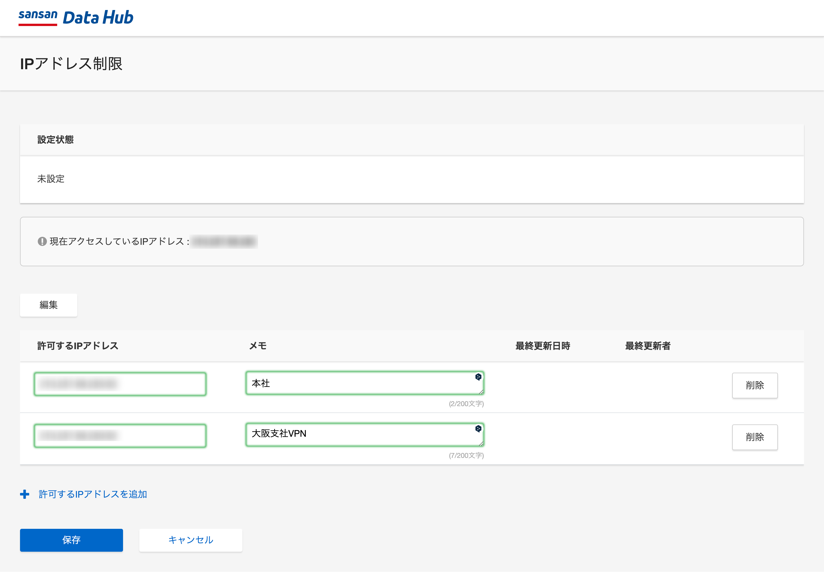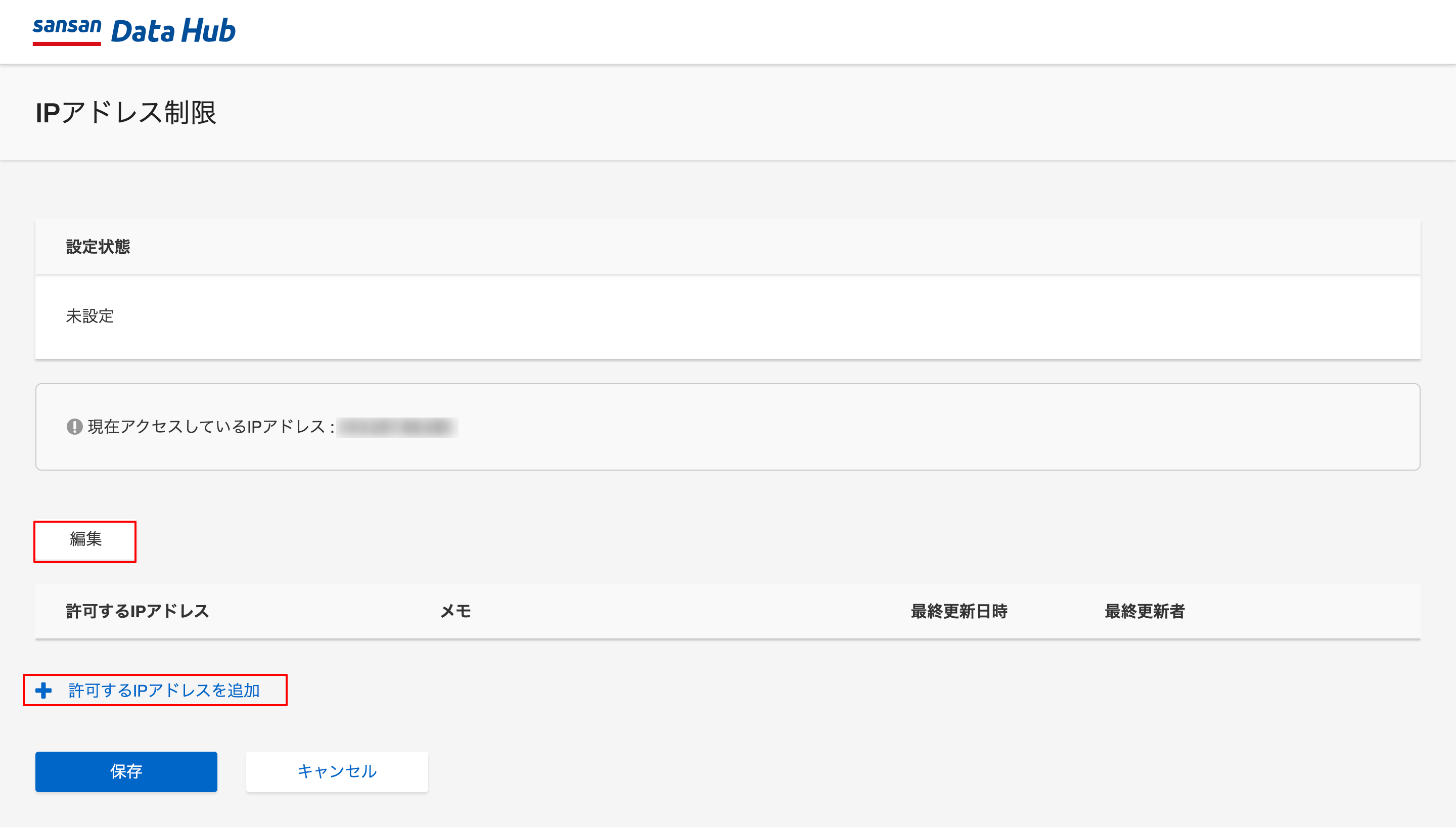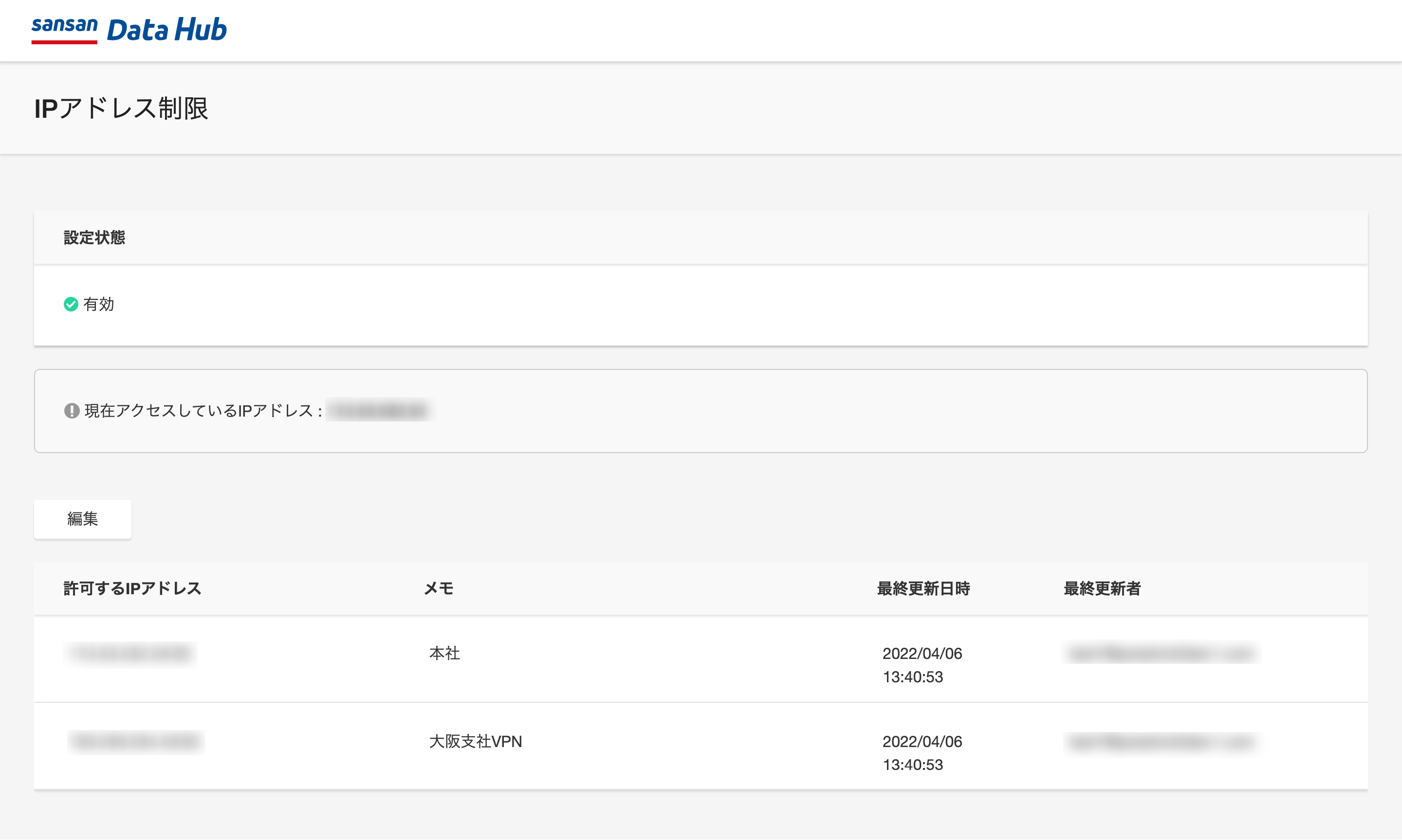 Sansan Data Hubでは、Web画面にアクセス可能なIPアドレスの範囲を制御することが可能です。